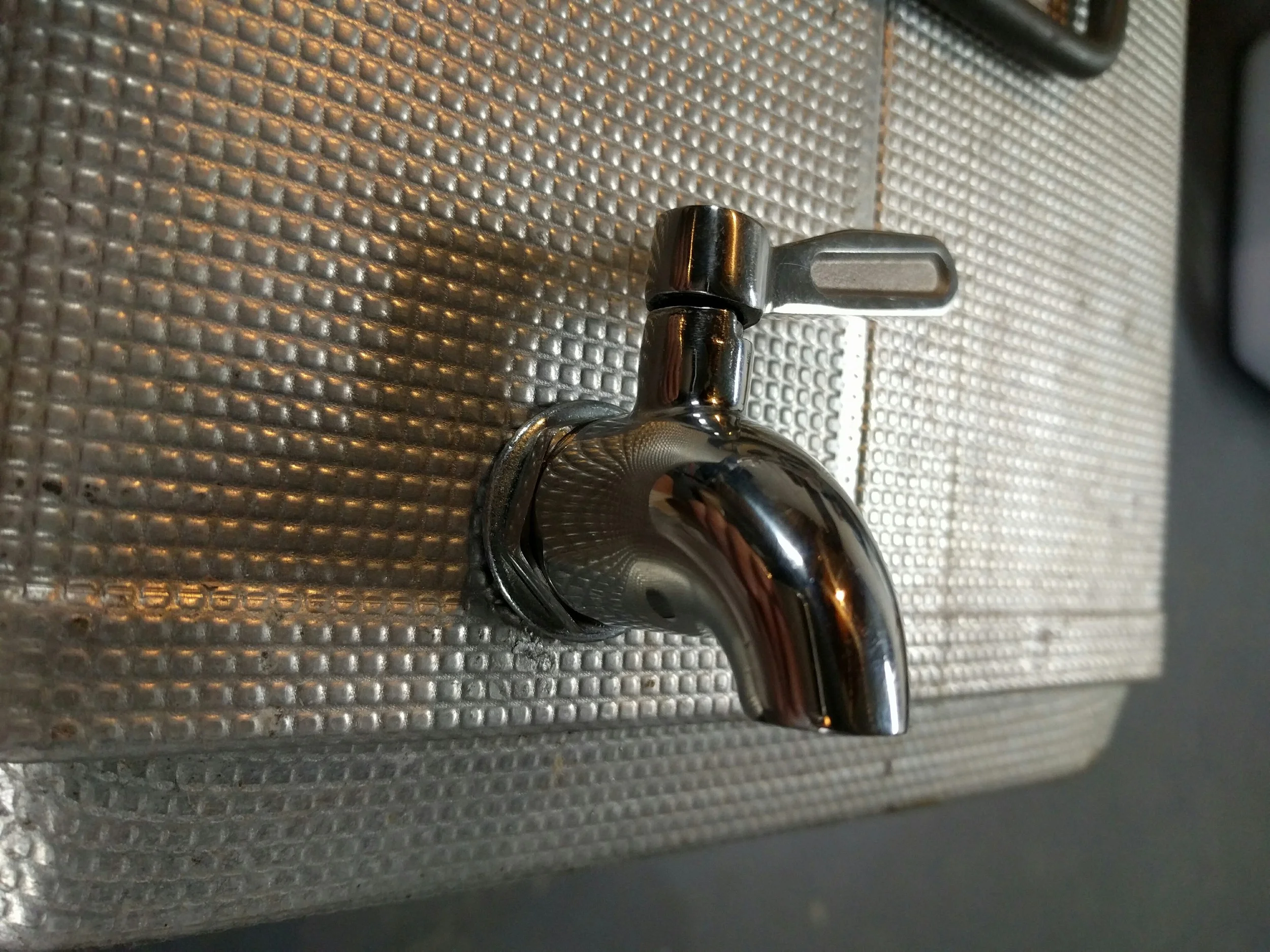 A friend was getting rid of some stuff and gave me this fantastic cooler. I do not know much about it, but it seems to be in pretty good shape. I could feel some water sloshing around so I had to take it apart. The plan is to replace the insulation with something more modern and to replace the spigot as well.